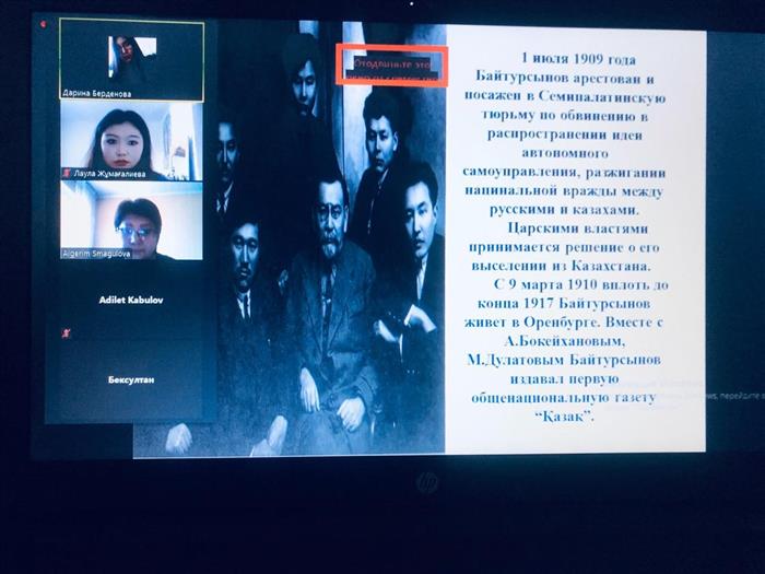 6 ноября 2020 года прошел онлайн-круглый стол, посвященный 150-летию Ахмета Байтурсынова со студентами 2 курса факультета международных отношений Казахского национального университета имени аль-Фараби по специальности «Мировая экономика».