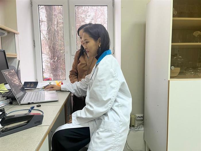 Докторант 3 курса специальности 8D05105-Биотехнология Хамзина Жаңылсын Меңдіғұлқызы во время актуализации знаний по первичной обработке и изучении биоинформатических методов анализа данных в Казахстанско-японском инновационном центре при КазНАУ, Алматы, 01.03.2023 г. -14.04.2023 г.