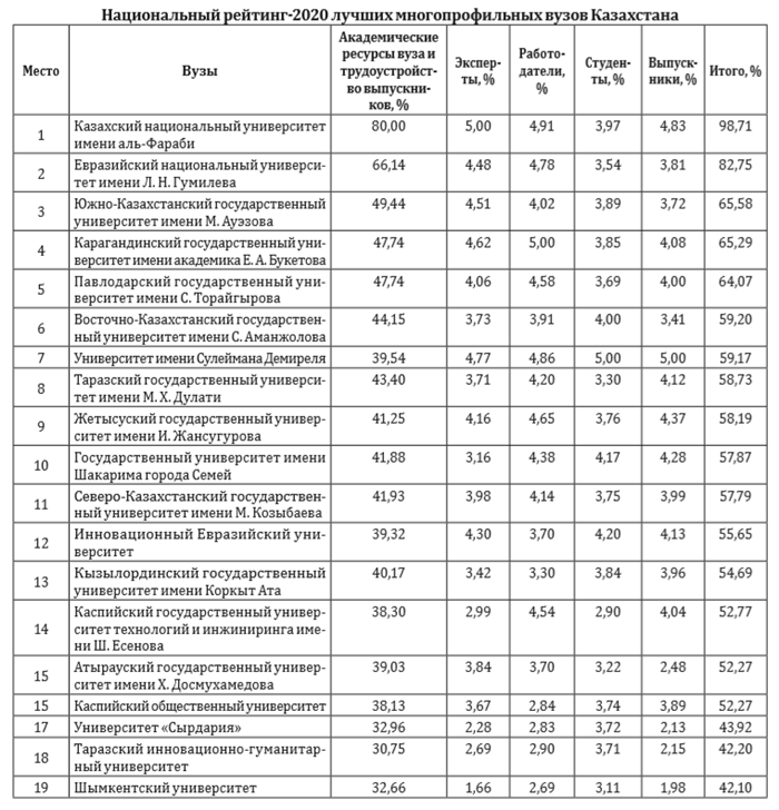 По итогам Национального рейтинга лучших вузов Казахстана – 2020 по данным Независимого агентства по обеспечению качества в образовании (НАОКО) КазНУ имени аль-Фараби занял первое место с большим отрывом среди многопрофильных ВУЗов. Поздравляем!