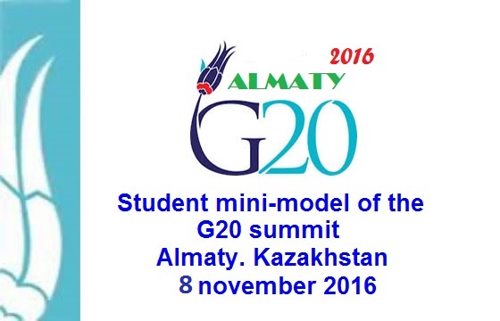 8 ноября 2016 года на факультете международных отношений в рамках проекта «Айналаңды нұрландыр» студенческий политико-экономический клуб «Тинберген» проводит мероприятие «I Саммит студенческой мини-модель G20», посвященное проблемам глобальной продовольственной безопасности с участием студентов 3-4 курсов специальности «Мировая экономика». В результате саммита планируется провозглашения Декларации «О создании студенческой мини-модели G20». Организаторами саммита выступают руководитель клуба «Тинберген», д.э.н., профессор Р.Е. Елемесов, к.э.н., доценты Мырзахметова А.М., Дабылтаева Н.Е., Бекмухаметова А.Б., докторант 2 курса, ст. преподаватель Оспанбаев Ж.А.