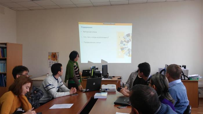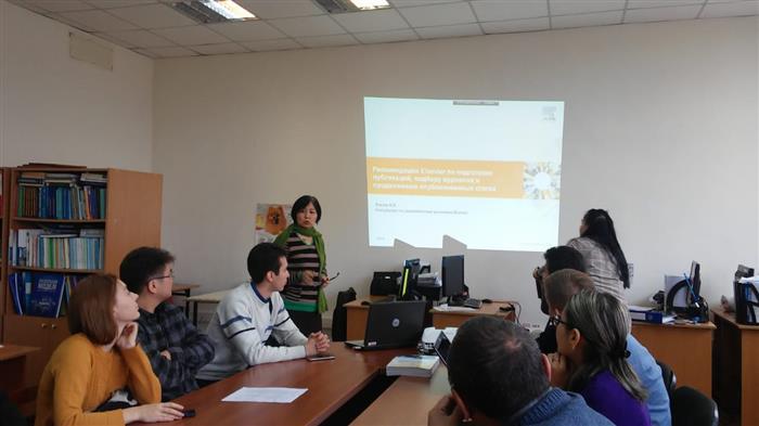 16 октября 2018 года при участии молодых ученых, докторантов и магистрантов, а так же преподавателей и сотрудников кафедры математического и компьютерного моделирования к.ф-м.н., доцентом Маусымбековой С.Дж. была проведена лекция на тему: « Рекомендации Elsevier подготовке публикаций, подбору журналов и продвижению опубликованных статей» на базе материала Локтева А.П., консультанта по аналитическим решениям Elsevier.