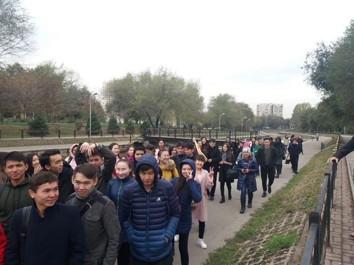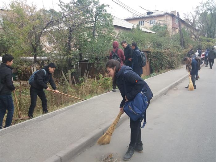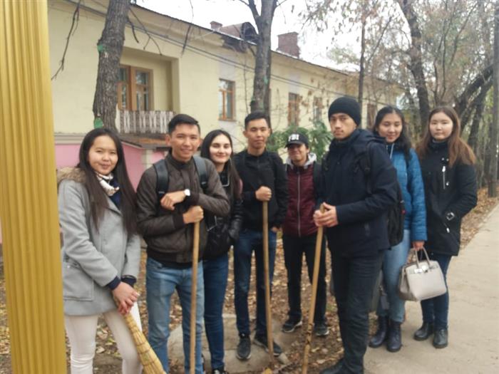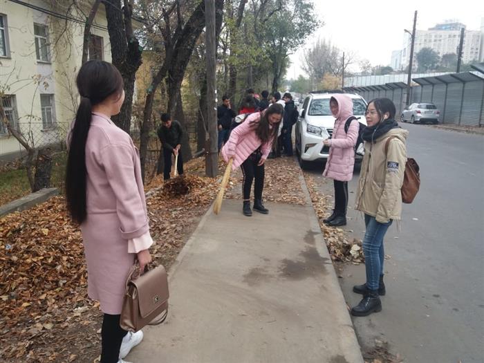Так и сегодня, в субботний день 20 октября 2018 года студенты первого курса Казахского национального университета, несмотря на рубежный контроль, собрались и помогли городу убрать мусор и листья, лежавший на земле.