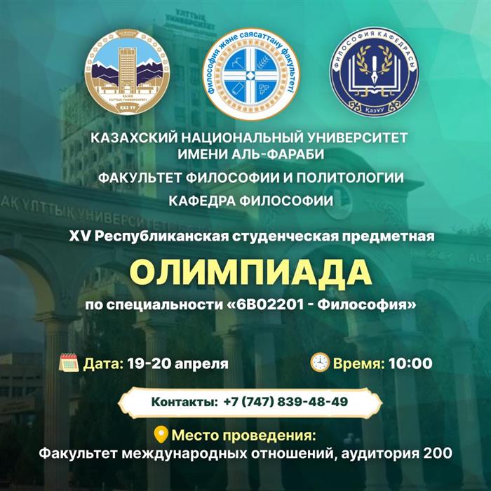 ХV Республиканская студенческая предметная олимпиада по специальности "6В02201-Философия"