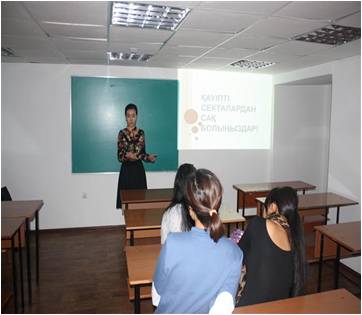 Со студентами 1-2 курсов кафедры философии была проведена разъяснительно-информационная работа под названием «Қауіпті секталардан сақ болыңыздар!» Студенты были информированы об опасных сектах и религиозных объединениях в Казахстане. Мероприятие было проведано и организовано доцентом кафедры философии Б.А. Джаамбаевой, преподавателями Т.А. Баракбаевой и Ж. Дагжан.