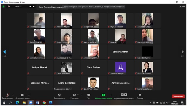 2021 г. 14 апреля на факультете философии и политологии на кафедре религиоведения и культурологии в честь 30-летия Независимости в рамках программы «Просвети окружающую среду» прошел открытый образовательный час. Открытый образовательный час прошел на платформе ZOOM в онлайн-формате.