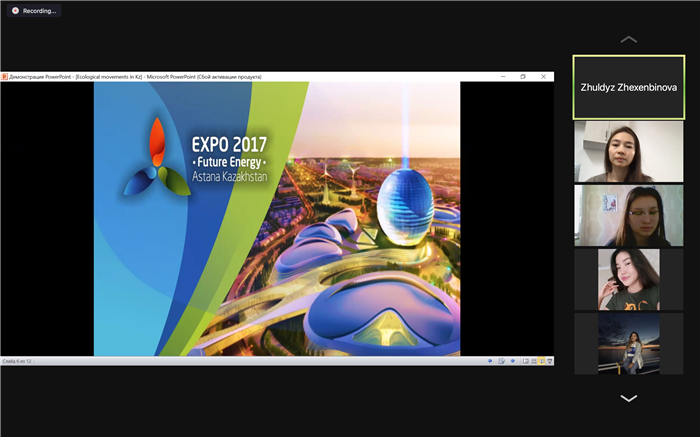 В рамках программы «Айналаңды нұрландыр» студентами специальности культурология2курса и старшими преподавателями кафедры религиоведения и культурологии Абилденовой Динарой и Айтеновой Альфией был проведен международный онлайн семинар подтемой «Экологические движения в Казахстане и Швейцарии».