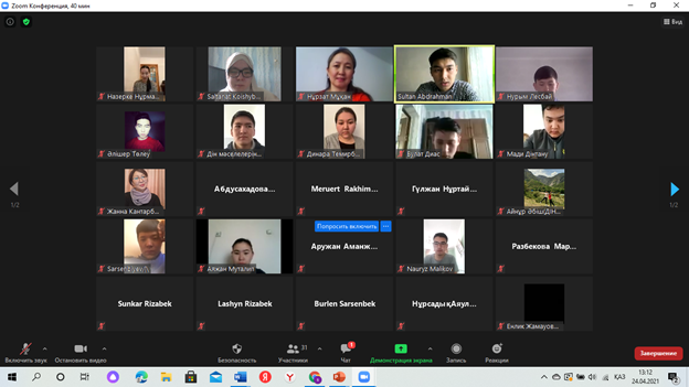 В рамках проекта «Айналаңды нұрландыр» организована встреча для студентов 1 и 2 курсов специальности религиоведениев онлайн формате на международном уровне на тему: «Значение специальности религиоведение и ее роль в современном обществе»
