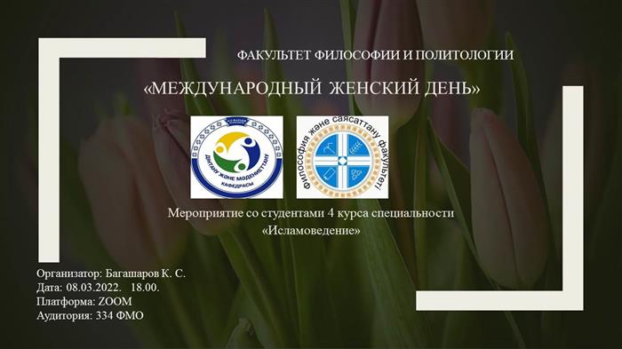 8 марта в рамках проекта «Айналаңды нұрландыр» кафедрой религиоведения и культурологии факультета философии и политологии, с участием студентов - исламоведов 4 курса была прочитана лекция на тему «Международный женский праздник».
