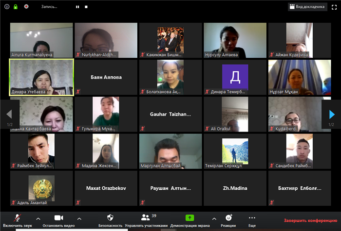 30 апреля 2020 г. заведующая кафедрой религиоведения и культурологии факультета философии и политологии КазНУ им.аль-Фараби профессор А.Д. Курманалиева и профессорско-преподавательский состав провели онлайн-встречу со студентами и магистрантами кафедры на платформе зума. Во время встречи студенты были проинформированы о предстоящей летней сессии, видах дистанционных выпускных экзаменов и их правилах и условиях, а также ответили на ряд вопросов студентов.