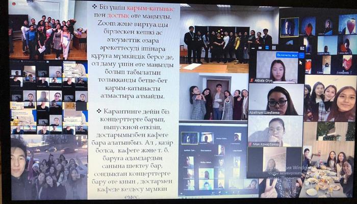 В рамках программы «Айналаңды нұрландыр» организованной студентами 2 курса факультета "Философии и политологии", кафедры "Религиоведения и культурологии", специальности "Культурология" и старшим преподавателем ШанбаевойАрайлымНурдыгуловной13февраля 2021 года в 10.30, состоялся Республиканский круглый стол на тему "Культура досуга молодежи во время пандемии". Во время конференции студенты поделились своими мыслями, раскрыли тему интересов молодежи во время пандемии.
