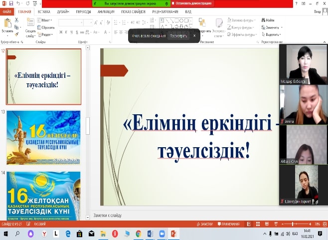 14 декабря 2020 года на онлайн-платформе Zoom со студентами 2 курса специальности «Культурология» был проведен познавательный час «Свобода моей страны - независимость!», посвященный 16 декабря.