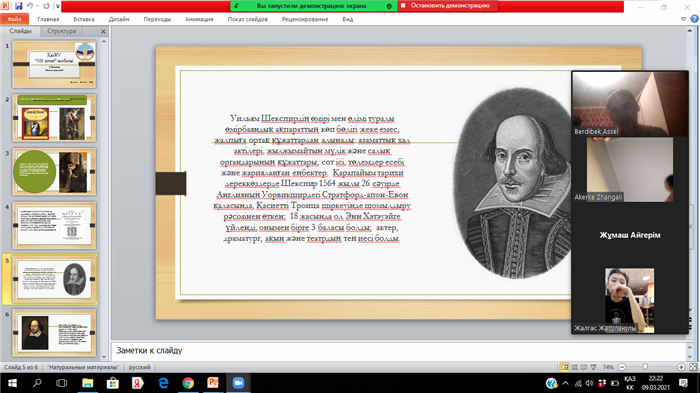 09. 03. 2021 года старшим преподавателем кафедры Религиоведения и Культурологии, факультета Философии и Политологии, руководителем производственной практики Елнуром Аскенулы, старшим преподавателем Тунгатовой Улжан Аскаровной и студентом 4 курса специальности «Религиоведение» Жаксылык Енлик было организовано мероприятие в рамках проекта «100 кітап». В ходе данного мероприятия были обсуждены жизнь и творчество Уильяма Шекспира, были заданы вопросы о романе, участники поделились впечатлениями от прочтения романа.