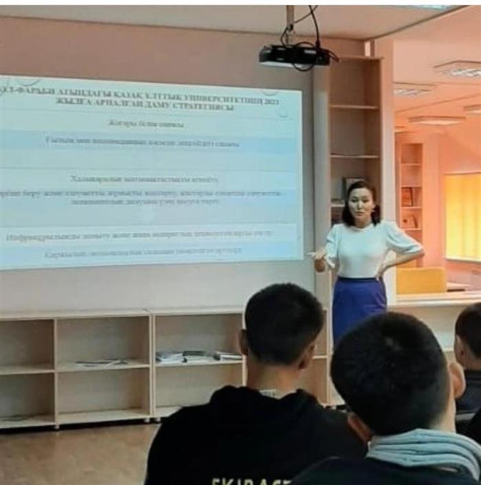 25.03.2022 г. в КазНУ им. Аль-Фараби состоялась встреча с 17 обучающимися областного многопрофильного, полиязычного лицея-интерната, расположенного в г. Экибастузе. На данном совещании специалисты университета ответили на интересующие вопросы учащихся, ознакомили их с образовательными программами. Желаем абитуриентам удачи!