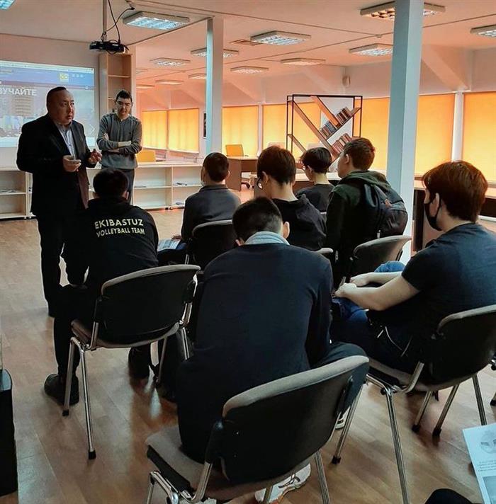 Преподаватели кафедры социологии и социальной работы Мамытханов Д. К., Орымбетов А. Е. 25 марта встретились со школьниками и дали направление для дальнейшего выбора профессии.