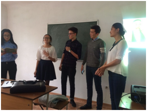 3-го октября в 16:00 ч. в факультете Международных отношений в 344 (ФМО) ауд. прошло в рамках проекта "100 книг" мероприятие на тему "Қазақтың бір туар ақыны Абайдың қара сөздері". Участниками были студенты 1 курса специальности «Социальная работа». Они читали произведения Абая и их анализировали. Показали презентацию и делились с новыми познаниями и эмоциями.
