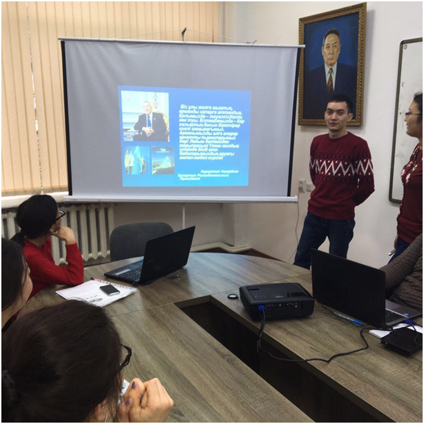5 декабря 2016 года кафедра социологии и социальной работы факультета философии и политологии в рамках проекта «Айналаңды нұрландыр» провели круглый стол воспитательного характера на тему «25 лет независимости Казахстана: достижения и перспективы президента РК». Активное участие приняли студенты бакалавриата, магистратуры и преподаватели кафедры.