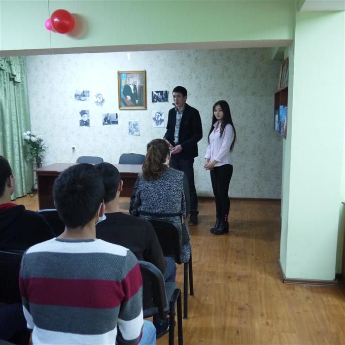 26 февраля в 19:00 состоялся круглый стол, посвященный победе в Великой Отечесственной Войне, в рамках проекта «100 кітап». Во время круглого стола обсуждался роман Б.Момышулы «За нами Москва» и фильм «Пианист» режиссера Романа Полански. Мероприятие прошло в общежитий №9, организаторами которого выступили преподаватели кафедры «социологии и социальной работы» Жаназарова З.Ж., Нурбекова Ж.А., магистранты 1 курса Жадрин Б.Б., Аманкулова А. В обсуждений приняли участие студенты 1, 2 и 3 курса, специальноси «Социология» и «социальная работа».