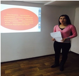 В рамках проекта «Айналаңды нұрландыр» 18 марта 2015г. в 12.30 в аудитории 118 ФМО был проведен круглый стол на тему «Формирование профессиональной компетентности будущего социального работника». Организаторы мероприятиий: зав.кафедрой социологиии и социальной работы, профессор Абдирайымова Г.С., д.соц.н, профессор Абдикерова Г.О., препод. Султанова А.М., магистрант 1 курса специальностий социальной работы Сияз Г.Н.