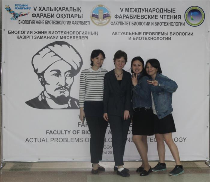 На факультете биологии и биотехнологии с 10 по 11 апреля 2018 года состоялась V Международная конференция студентов и молодых ученых «Фараби әлемі». Всего по секции №3 "Проблемы генетики, молекулярной биологии и экологии" получено 49 тезиса. Победители секции (слева направо: Шагирова Айдана, Татьяна Абрамюк, Султонова Алия, Колдасбаева Диана). Поздравляем победителей!
