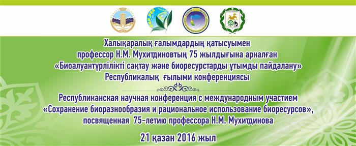 Республиканская научная конференция с международным участием «Сохранение биоразнообразия и рациональное использование биоресурсов», посвященной 75-летию доктора биологических наук, профессора, Почетного члена Национальной Академии Наук Республики Казахстан, академика КазНАЕН Мухитдинова Наштая Мухитдиновича