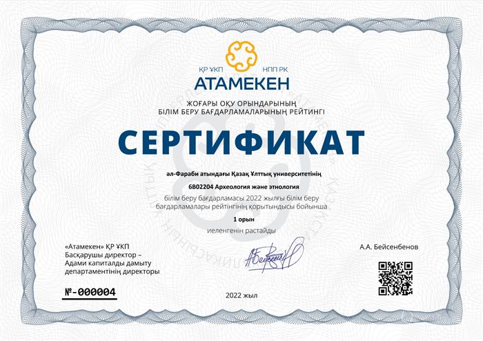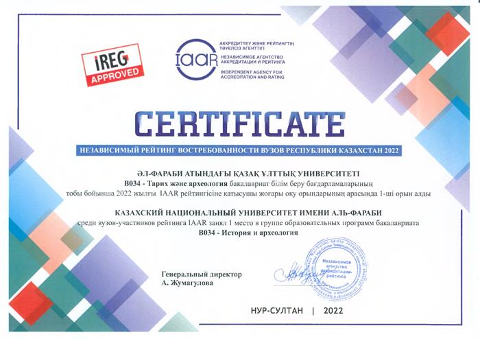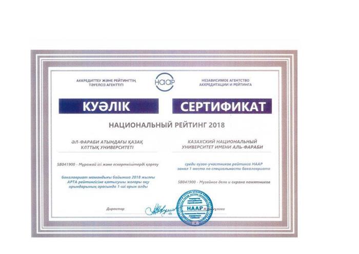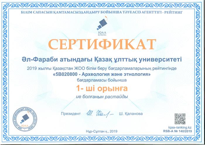Специальность бакалавриата "5В020800-Археология и этнололгия" занял 1 место среди высших учебных заведений Республики Казахстан |