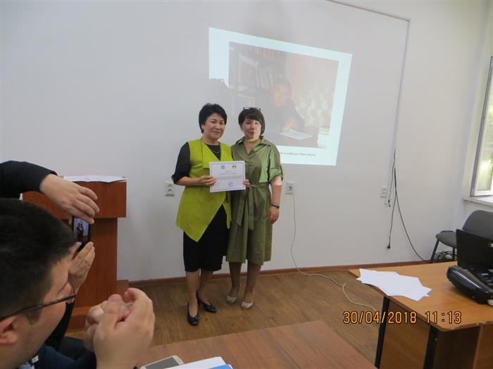 После выступлений докладчиков Председатель жюри Республиканского конкурса научно-исследовательских работ студентов им. С.М. Джакупова 2018года – профессор КазНПУ им. Абая, доктор психологических наук, Акажанова А.Т. огласила результаты конкурса. B 2018 году на конкурс были присланы 4 работы из трех вузов и двух городов. Следует отметить, что все работы были актуальными, интересными, эмпирически грамотно выполненными. Особо члены жюри отметили работу Сыздыковой Азизы.