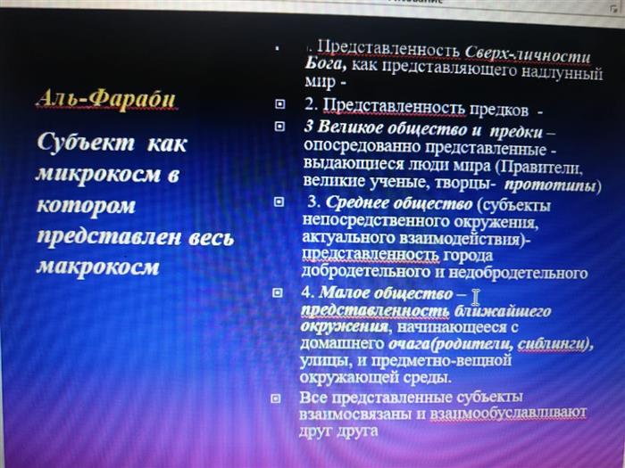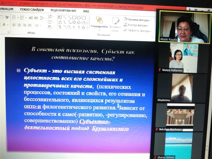 В вебинаре рассматривались работы аль-Фараби в контексте психологической науки. Фатима Сагимбековна продемонстрировала взгляды аль-Фараби касательно субъекта. Также она привела сравнительный анализ изучения субъекта в советской, западной психологии и психологии в постсоветском пространстве.