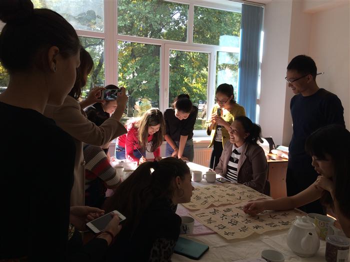 В рамках проекта «100 кiтап» магистранты 2 года обучения и студенты 2 курса, специальности «Педагогика и психология» кафедры педагогики и образовательного менеджмента факультета философии и политологии 1 октября 2015 года провели вечер «Встреча с Конфуцием». Мероприятие прошло в теплой душевной обстановке, были обсуждение идеи Конфуция о духовно-нравственном образовании, магистранты из Китая ознакомили всех с основами китайской традиционной культуры.