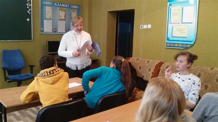 18 января 2016 г. в 16.00ч. в рамках проекта «Айналаңды нұрландыр» преподавателями кафедры педагогики и образовательного менеджмента проводилось мероприятие с воспитанниками старших классов детского дома №1. Главной задачей было, согласно рекомендации психолога, снять внутреннее напряжение и повышенную агрессивность, проявляющееся во взаимоотношениях подростков. Вначале встречи была организована интерактивная беседа по способам формирования оптимистической установки на жизнь, использовались арт-терапевтические техники снятия стресса и опросные методики с целью выяснить сферу актуальных интересов и ценностей воспитанников. Дети проявили интерес и заинтересованное участие, выразили желание встретиться снова, предложили продолжить интеллектуальное соревнование: «Что? Где? Когда?». Все остались очень довольны общением! Организатор: Пузикова С.М.