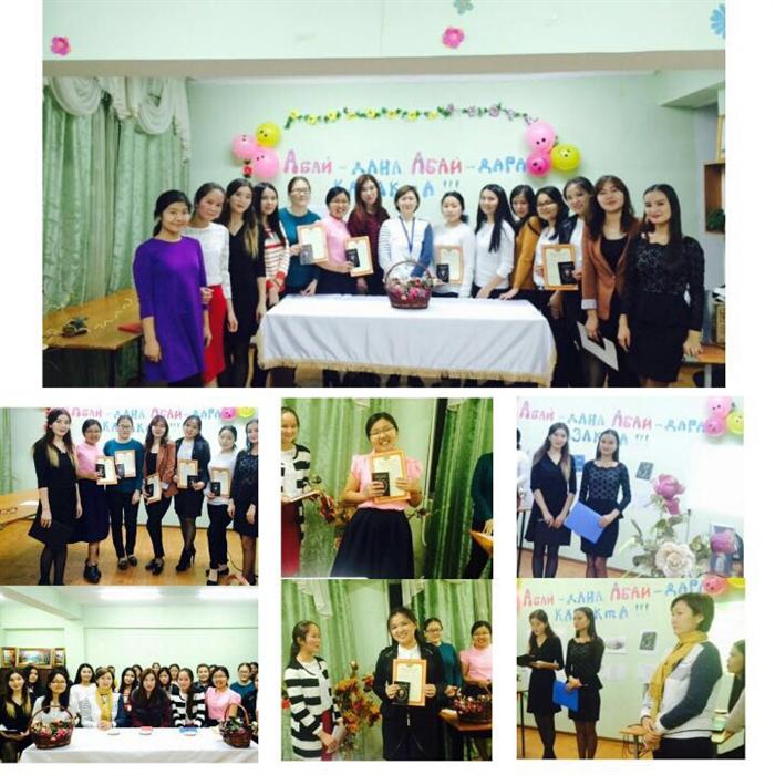 В рамках этого мероприятия устроилось соревнование между студентами разного курса. В этом соревновании были различные задания: презентация, вопросы и ответы, продолжение стихов Абая и задачи. Участники соревнования юные почитатели поэзии Утешова Райхан, Жаппарова Айгерім, Мамыр Айдана, Хадрова Шынар, Қажымұқан Ақтолқын не только хорошо подготовились, но и проявили себя активно, читая без запинки наследие великого поэта, отвечали на вопросы. Ведущие соревнования Рахматулла Жамиля и Өмірқұлова Айгерім, следили за ходом соревнования, указывали правильное направление участникам, таким образом внесли свой вклад мероприятию. Пока члены жюри выводили результаты соревновании, одна из организаторов мероприятия студентка 4-курса Айтбекова Жансая в качестве мальенкого подарка и для большего вдохновления прочитала поэму Абая Кунанбаева «Ескендір». По итогом соревновании, 1-место заняла Жаппарова Айгерім, 2-место заняла Утешова Райхан, 3-место Хадрова Шынар, 4-место Мамыр Айдана, 5-место Қажымұқан Ақтолқын. Справедливое судейство Өтебаевой Алины и Куттыбек Арайлым и совместный труд студентов 4-курса специальности социальная педагогика и самопознание в достижении цели воспитательного мероприятия удовлетворили участников и поддержали хорошое настроение.