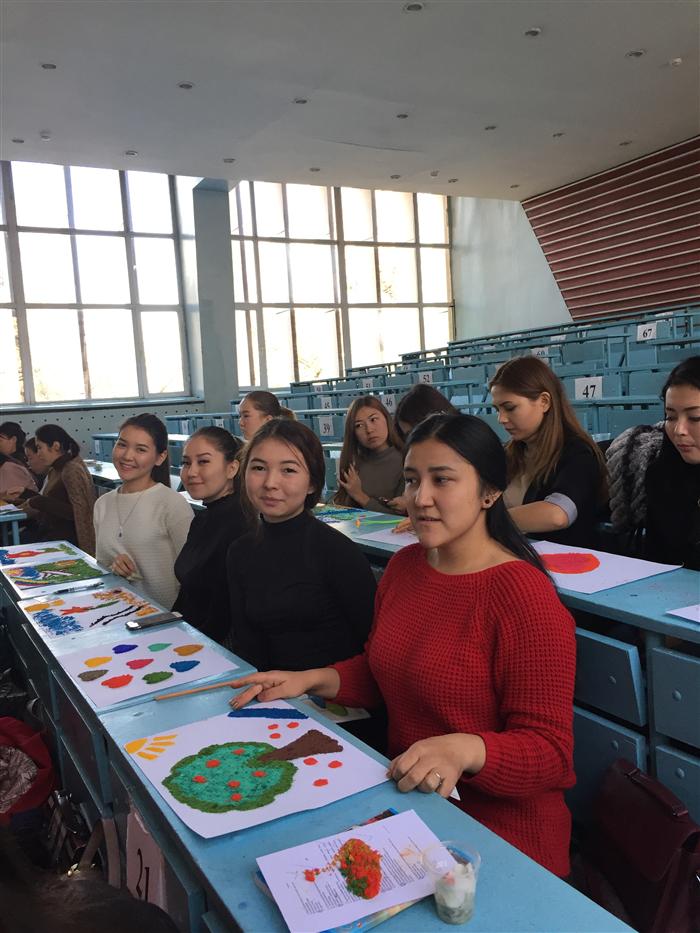 Факультете философии и политологии 2016 года 23 ноября в рамках проекта «Айналаңды нұрландыр» проводили коллаж терапию на тему «Позитивные эмоции». На терапию участвовали студенты 3 курса кафедры «Педагогики и образовательного менеджмента». Во время терапии студенты с помощью креативных идеии сделали коллаж. Коллаж терапия вдохновил студентов к творчеству и взаимопониманию. Организаторы: к.п.н., доцент Ұ.Б. Төлешова и магистранты 2 курса специальности «Педагогика и психология» Абдуқадыр Ш. Темірханова А.