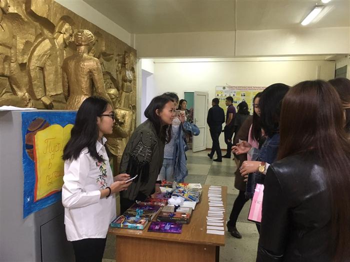 27 сентября 2017 года в рамках проекта «100 кітап» к.п.н. и.о. профессора Г.А. Қасен, а также студенты 3 курса специальности «Социальная педагогика и самопознание» провели акцию «Прочитай книгу и подари другому», которая прошла в фойе корпуса ФФиП.
