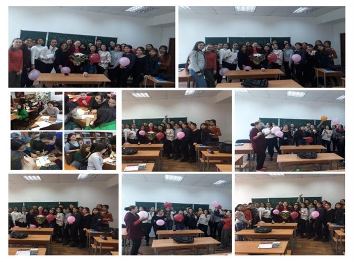 8 октября 2018 г. в рамках инновационного проекта «Айналаңды нұрландыр» студенты 1 курса «Педагогики и психологии» провели праздничное мероприятие на тему «Мой учитель». Данное мероприятие было посвящено «Дню учителя» студенты сделали приятный сюрприз поздравив своего куратора-эдвайзера К.Н. Ашекееву. Сюрприз праздничного дня стал концерт, подготовленный студентами, свой таланты показали Ашикбаева Дамелия, Рзакулова Шынарай, Усенбекова Сымбат.