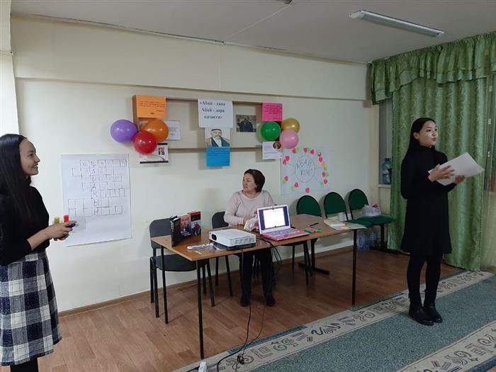 Студенты вспоминали произведения великого поэта Абая Кунанбаева и декламировали стихи поэта, раскрывали значение нравственности, трудолюбия, честности, быть далекими от вредных привычек в произведениях Абая. Были проведены различные тренинги и игры. Студенты приняли активное участие в воспитательном мероприятии.