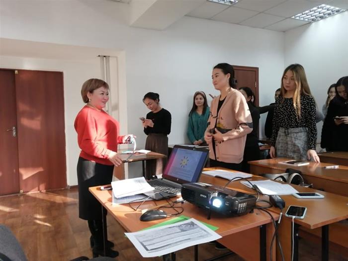 Доцент кафедры педагогики и менеджмента образования КазНУ им. Аль-Фараби Аринова Б.А. и магистрант 2 курса специальности «Социальная педагогика и самопознание» Кабдолдина И. в рамках педагогической практики 3 декабря 2019 года провели открытое занятие со студентами 4-го курса на тему: «Гармония в жизни человека с природой и с искусством». В ходе лекции были проведены тренинги по духовно-нравственным ценностям, теоретические вопросы, такие как восприятия, определения характера личности в обществе и гармоничное отношение человека к природе к окружаюшей среде и самому себе. Рефлексия как обратная связь помогла студентам высказать свои убеждения применяя такие техники как «Дух истины», формулы «POPS», «Кинометафора», «МIX» раскрыв при этом сущность духовных ценностей в жизни человека. Студенты проявили активность и сумели отсоять свои мнение о самопознании и саморазвитии человека в целом.