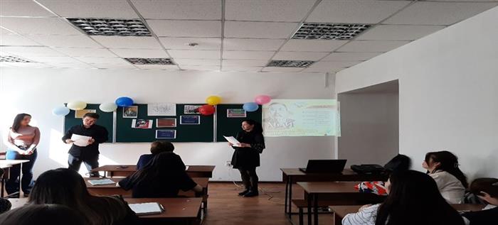 В рамках педагогической практики под руководством к. п. н., доцента кафедры педагогики и образовательного менеджмента Ариновой Б. А., магистрант 1 курса специальности «Социальная педагогика и самопознание» Бердібай С. провел воспитательный час на тему: "Бес нәрседен қашық бол, Бес нәрсеге асық бол, Адам болам десеңіз" , посвященный 175-летнему юбилею великого Абая. В ходе мероприятия студенты делились своими мыслями о значении произведений Абая.В данном мероприятии приняли участие студенты 3 курса, которые читали стихи Абая. Также были исполнены творческие задания, посвященные произведениям Абая в виде вопросов-ответов.
