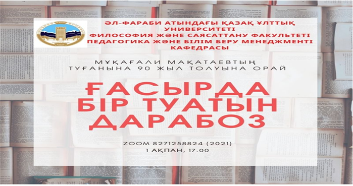 1 февраля 2021 года состоялось мероприятие, посвященное 90-летию талантливого поэта Мукагали Макатаева, на тему «Ғасырда бір туатын - Дарабоз ". В мероприятии приняли участие профессорско-преподавательский состав и сотрудники кафедры педагогики и образовательного менеджмента Казахского национального университета имени аль-Фараби, магистранты и студенты специальностей «Социальная педагогика и самопознание», «Педагогика и психология» и учителя и учащихся средней школы №40 Алматинской области села Боралдай Илийского района. В ходе мероприятия участники были ознакомлены с жизнью и деятельности М. Макатаева и прочитали его произведения.