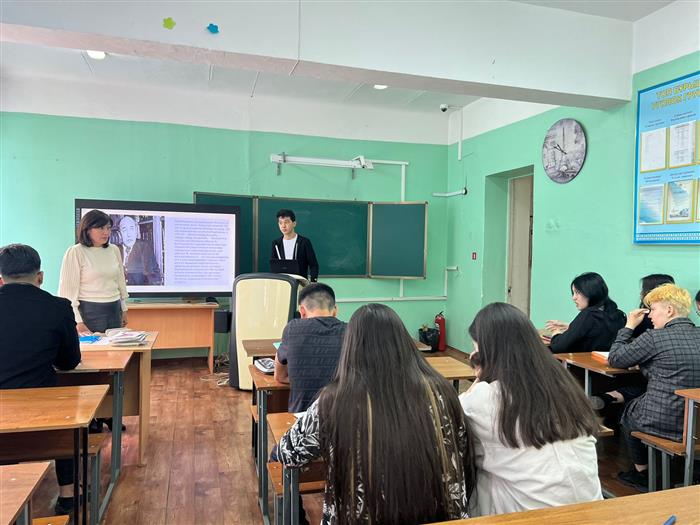 В группе ПР-102 колледжа КазНУ им. Аль-Фараби под руководством куратора Пиримжановой Г.К. был проведен кураторский час «Мудрый сын земли казахской» писателя М. Ауэзова - 125 лет.