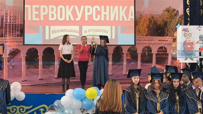 Обучающиеся первого курса приняли клятву первокурсника и исполнили международный гимн студентов «Gaudeamus». Очень трогательно поздравили новоиспеченных студентов кураторы – преподаватели Атамбекова Гульнара Келдибаевна, Ергали Динара Ергалиевна и Сапирова Мира Мирхановна. Они сказали теплые слова поздравления и напутствия. прочитали стихи.