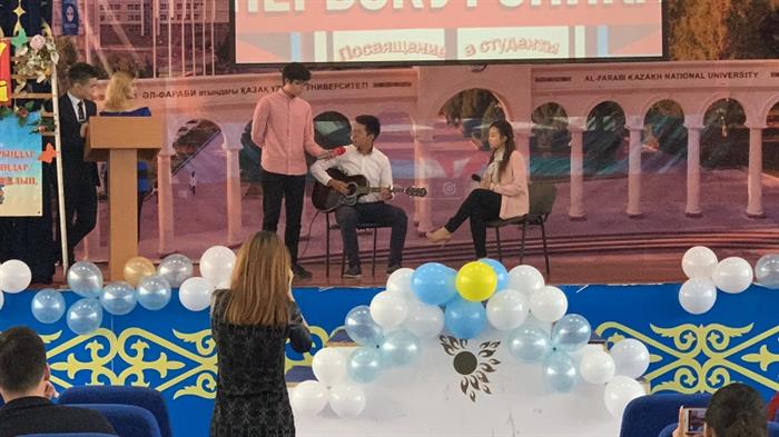 31 10.2018 г. в колледже КазНУ имени аль-Фараби прошло праздничное мероприятие – Посвящение в студенты. Это ежегодное традиционное мероприятие, которое служит началом отсчета самого яркого и незабываемого периода в жизни каждого обучающегося. Весь сентябрь и октябрь первокурсники привыкали к особенностям студенческой жизни. Ведь посвящение в студенты это важный и волнительный момент в жизни первокурсника, полный ярких эмоций и незабываемых впечатлений. Это одна из самых ярких традиций в учебных заведениях. Первокурсники стали полноправными членами большой и дружной семьи, частичкой единого целого – они стали студентами колледжа Казахского Национального университета имени аль-Фараби.