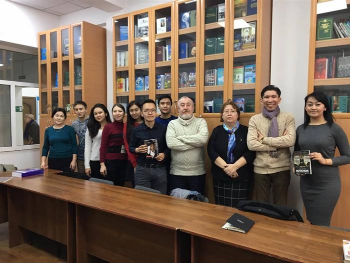 Давно ждали автора книг "КОТЕЛОК" и "ВИСОКОСНЫЙ.KZ". И вот наконец дождались ))) Наш сегодняшний гость Вадим Борейко подарил свои книги в нашу библиотеку. Конечно же когда прочитаешь книгу, а потом встречаешься с автором всегда много вопросов и самое главное - потом переосмысливаешь прочитанное. Вот и сегодня когда Вадим Борейко рассказывал некоторые подробности, студенты, то смеялись, то удивлялись. Когда рассказывают о серьезных вещах с юмором студенты всегда в восторге. Ведь сегодня никто не говорил о глобализации, модернизации, демократизации... Спасибо Вадим Борейко!