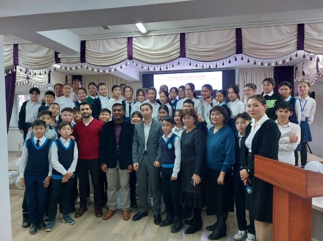 Профессора также пригласили в местную школу недалеко от Алматы, в специализированный лицей имени аль-Фараби, Алмалыбак, выступить с мотивационной речью перед учащимися. После краткого ознакомления с его биографией и достижениями учащиеся с любопытством задавали множество вопросов о его научной карьере, жизни в международных исследовательских группах и научном сотрудничестве. Они также спросили, почему доктор Кабар Аббас выбрал химию в качестве своей области исследований, на что он ответил, потому что химия нравилась ему со школьных времен. В целом, эта поездка была весьма информативной для учащихся и персонала школы.