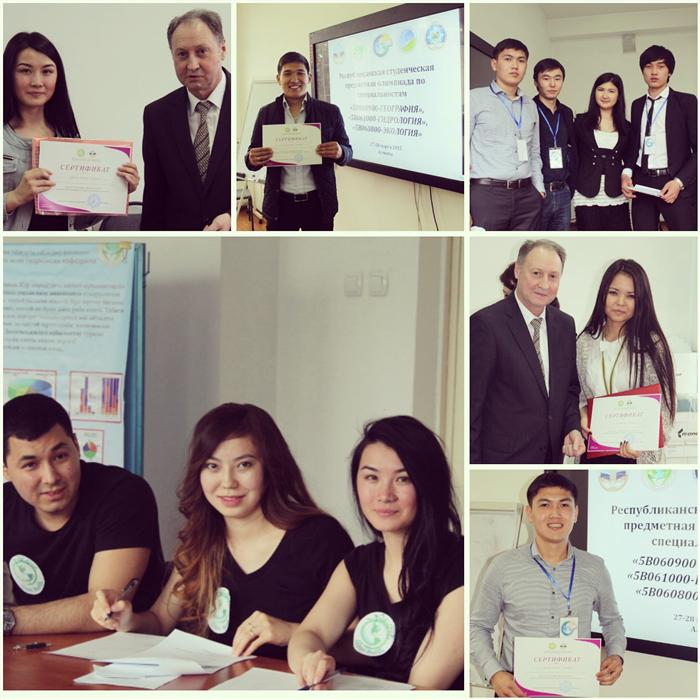 Факультете географии и природопользования прошла Республиканская студенческая предметная олимпиада по специальности «5В061000-Гидрология» 2015 года были заявлены 6 команд: 3 команды из Евразийского национального университета им. Л.Н. Гумилева и 3 команды от Казахского национального университета имени аль-Фараби: