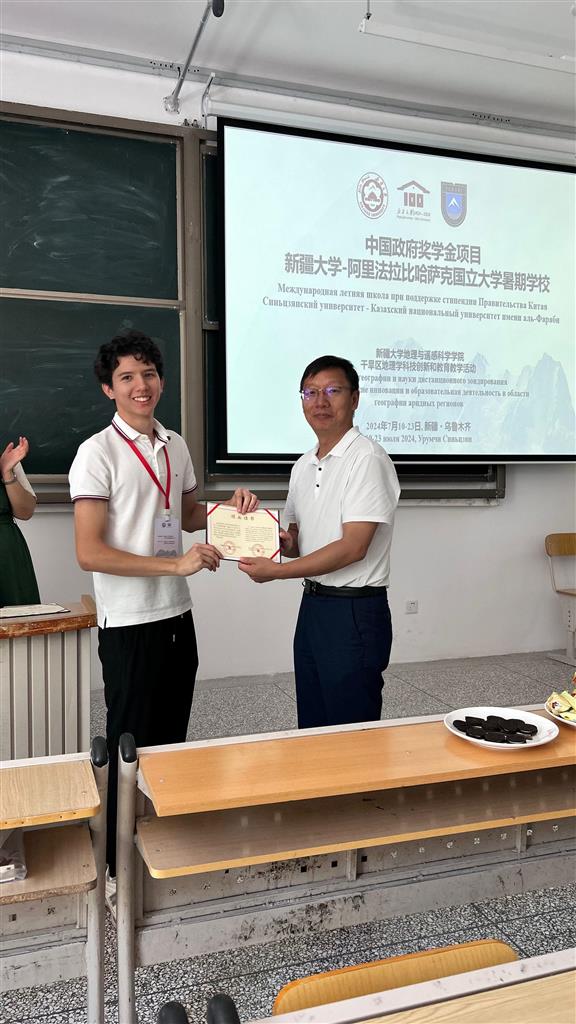 Рады поделиться, что наш студент 3 курса Дарын Абугали и магистрант 1 курса Райбану Ахметова приняли участие в летней школе Синьцзянского университета. Это была уникальная возможность для обмена знаниями и культурного обогащения. Программа длилась две недели и включала лекции по передовым научным проблемам в области географии, таким как опасные гидрометеорологические явления, влияние изменения климата и процесс урбанизации. Также студенты изучали новые технологии и методы научных исследований. Эта двухсторонняя программа "Летняя школа" является продолжением сотрудничества Казахского национального университета им. Аль-Фараби и Синьцзянского университета в области географии и дистанционного зондирования.