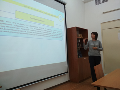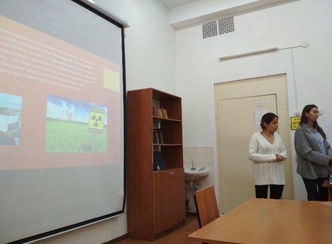 На научном семинаре, посвященном теме проекта «Санитарно-гигиеническая и радиационная оценка территории и учебных корпусов КазНУ им.аль-Фараби на содержание природного радиоактивного газа радон» были заслушаны четыре доклада от руководителя проекта и студентов-участников.