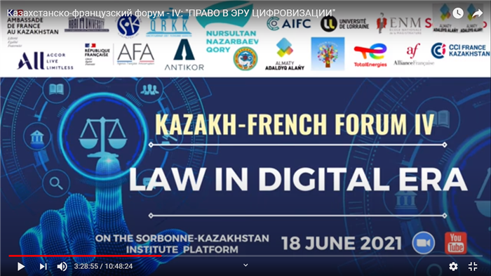 18 июня 2021 г Фонд Нурсултана Назарбаева, Посольство Французской Республики в Республике Казахстан, Институт Сорбонна-Казахстан КазНПУ им. Абая провели казахстанско-французский форум-IV «Право в эру цифровизации».