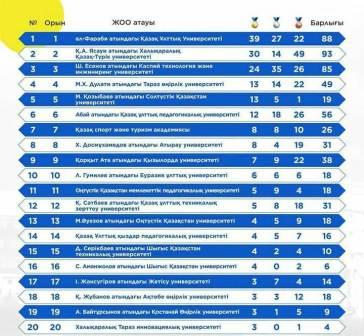 В соревнованиях по 5 видам спорта приняли участие 14 спортсменов-студентов КазНУ им аль-Фараби