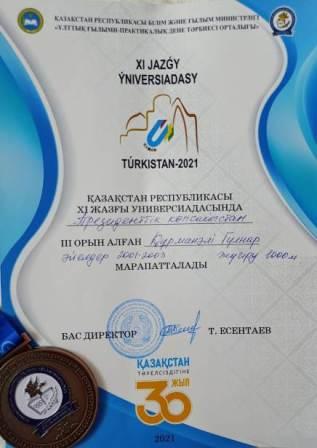 3 место - Құрманәлі Гүлнар, - КазНУ им.аль-Фараби, ФКиС