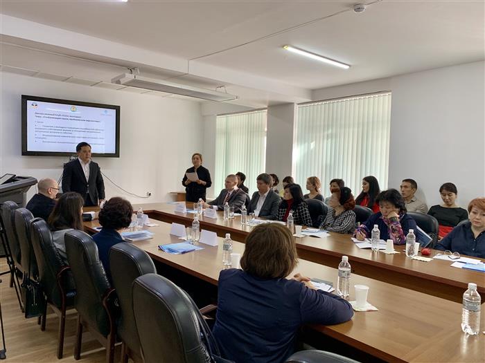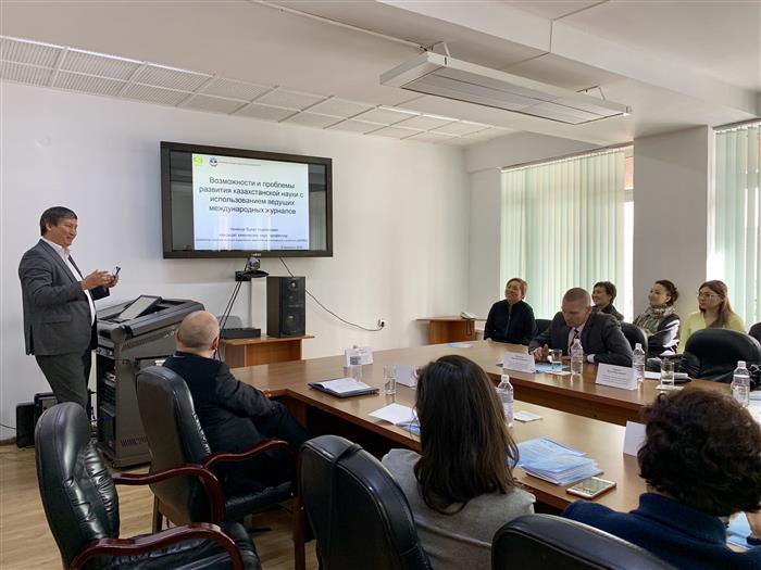 В качестве спикеров-оппонентов были приглашены Кенесов Б.Н.- профессор, член-корреспондент Казахстанской национальной академии естественных наук, директор Центра физико-химических методов исследования и анализа КазНУ им.аль-Фараби и Винников Д.В.- ассоциированный профессор, заведующий научно-исследовательской лабораторией здоровья и окружающей среды Факультета медицины и здравоохранения КазНУ им. аль-Фараби, национальный делегат от РК в ERS. Отношение к глобализации у всех специалистов неоднозначное. Конечно, глобализация может иметь как позитивный, так и негативный характер, однако альтернативы ей нет. Кенесовым Б.Н. были озвучены возможности и проблемы развития казахстанской науки с использованием ведущих международных журналов, среди которых оказались низкая отдача от научных исследований и слабый задел для коммерциализации, большое количество статей в сомнительных журналах и диссертаций сомнительного качества. Профессор предложил задуматься о возможности установления минимальных пороговых показателей для научных работников, рецензировании диссертаций зарубежными учеными, квотах на гранты местного уровня, работе реально работающих этических советов и сильных ученых в национальных научных советах. Следующий спикер-оппонент - Винников Д.В. провел анализ проблемных вопросов науки в сфере общественного здравоохранения, среди которых на первом месте были недостаточное финансирование, отметил, что основная масса тем- инициативные, выраженная ограниченность ресурсов, низкая мотивация сотрудников, низкое качество работ, масса непрямых расходов. Были предложены и возможные пути решения данных проблем.