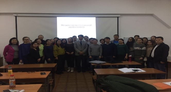 Исполняющая обязанности доцента кафедры эпидемиологии, биостатистики и доказательной медицины Раушанова А.М. в г. Атырау провела лекции и семинары по дисциплинам «Организация и управление здравоохранением» и «Корпоративное управление в службах общественного здравоохранении» по программе выездной магистратуры в рамках дистанционного обучения.